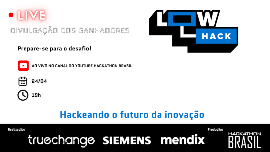 Hackathon Low Hack 🌐 Inscreva-se agora: https://hackathonbrasil.com.br/low-hack/ Garanta sua vaga e venha fazer parte dessa experiência.